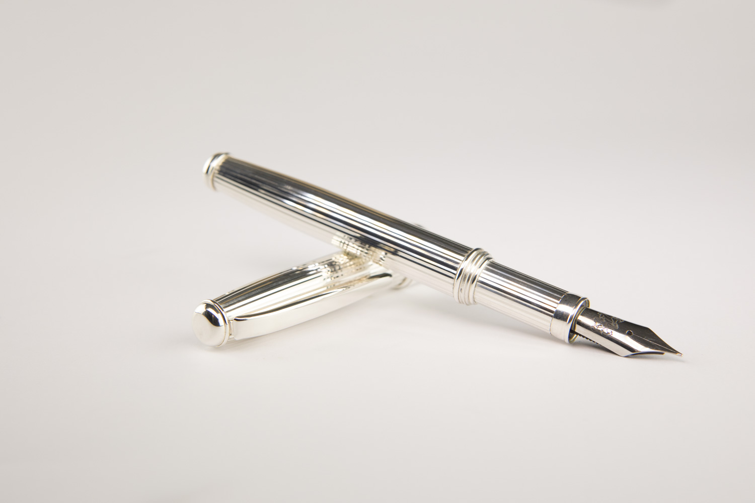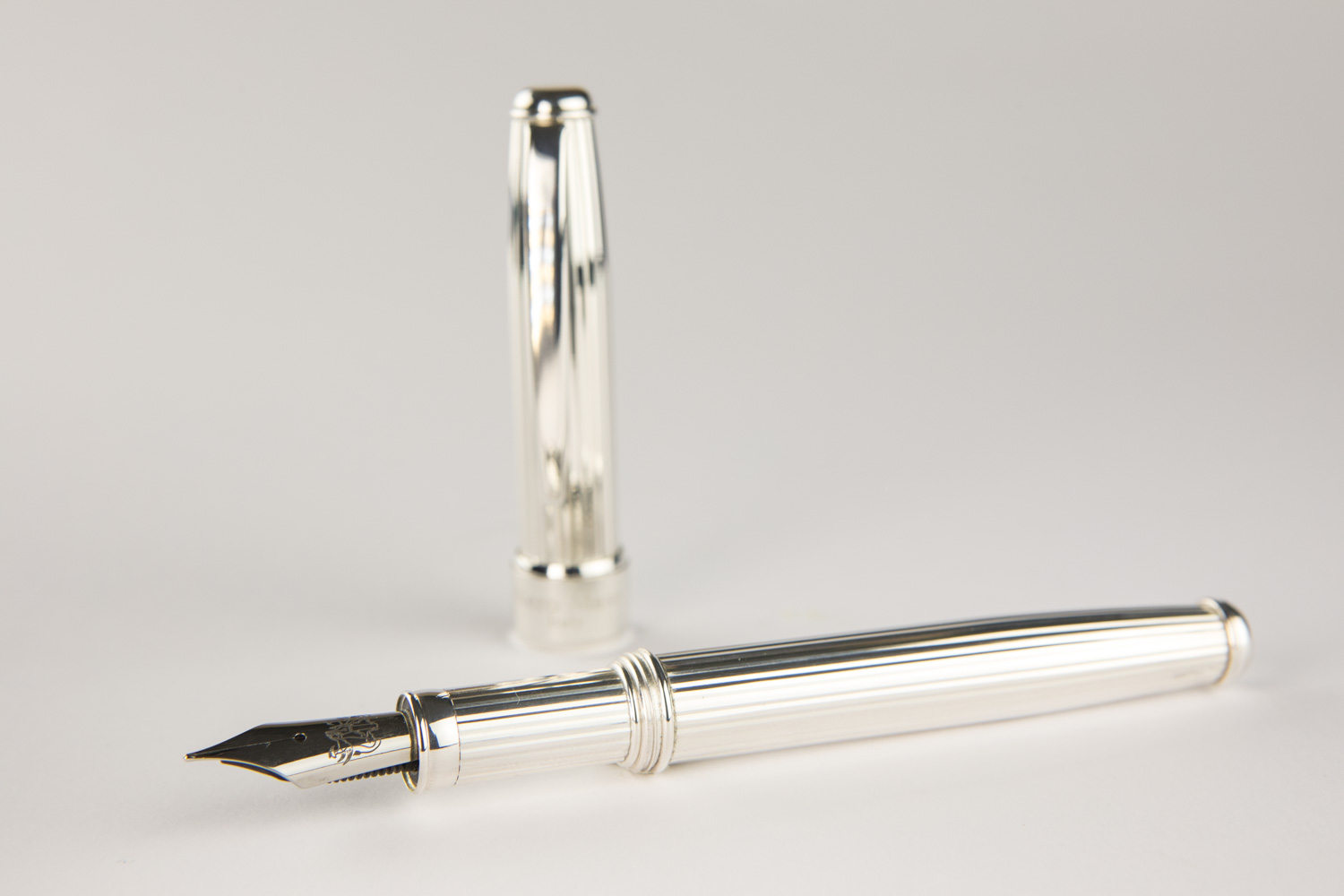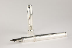 925 sterling silver fountain pen with vertical engravings, handcrafted in Italy. Also available with an 18 kt gold nib.